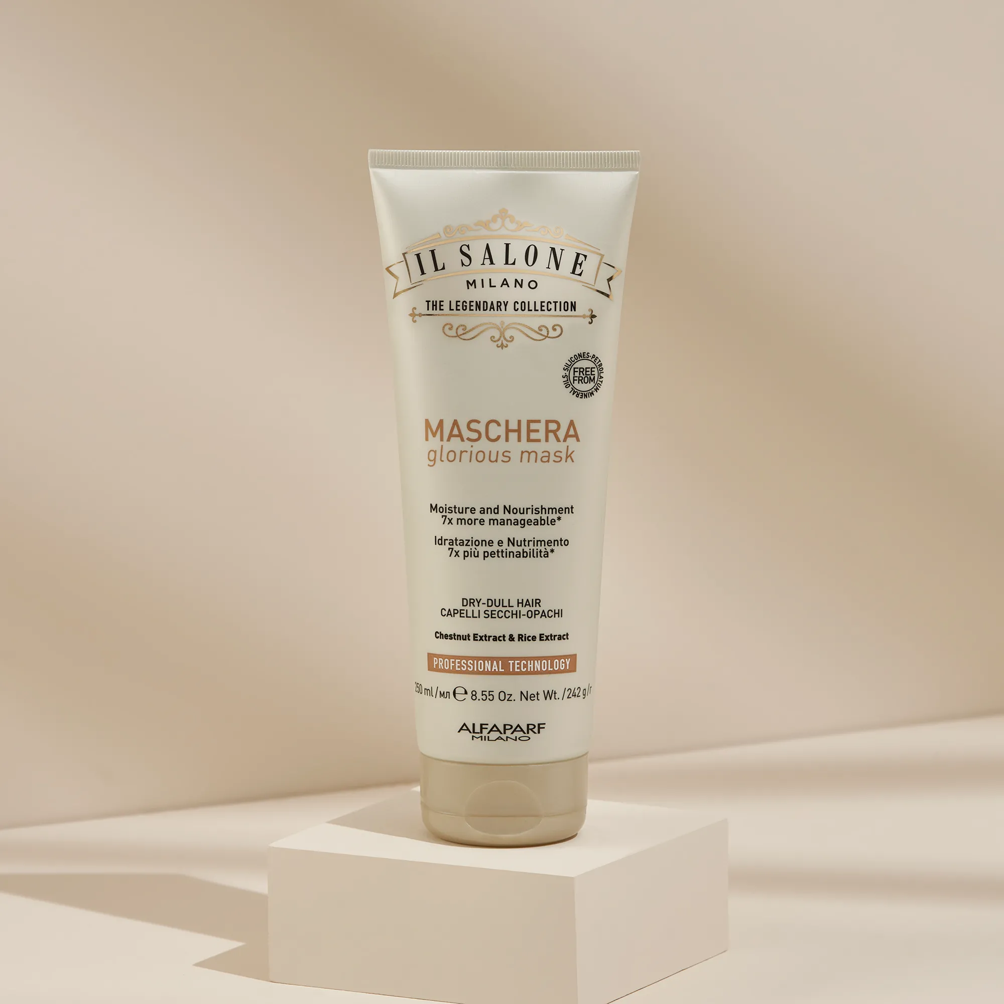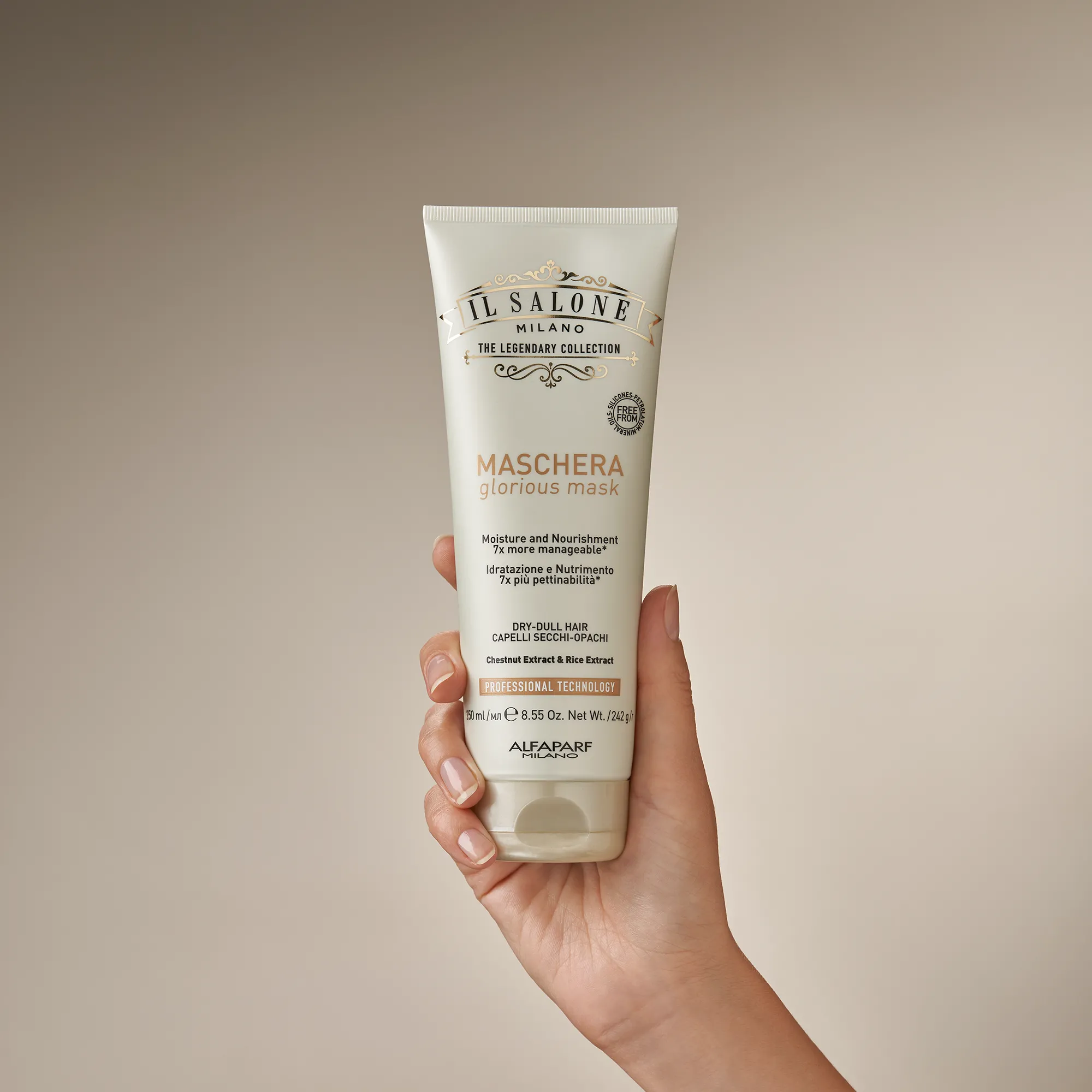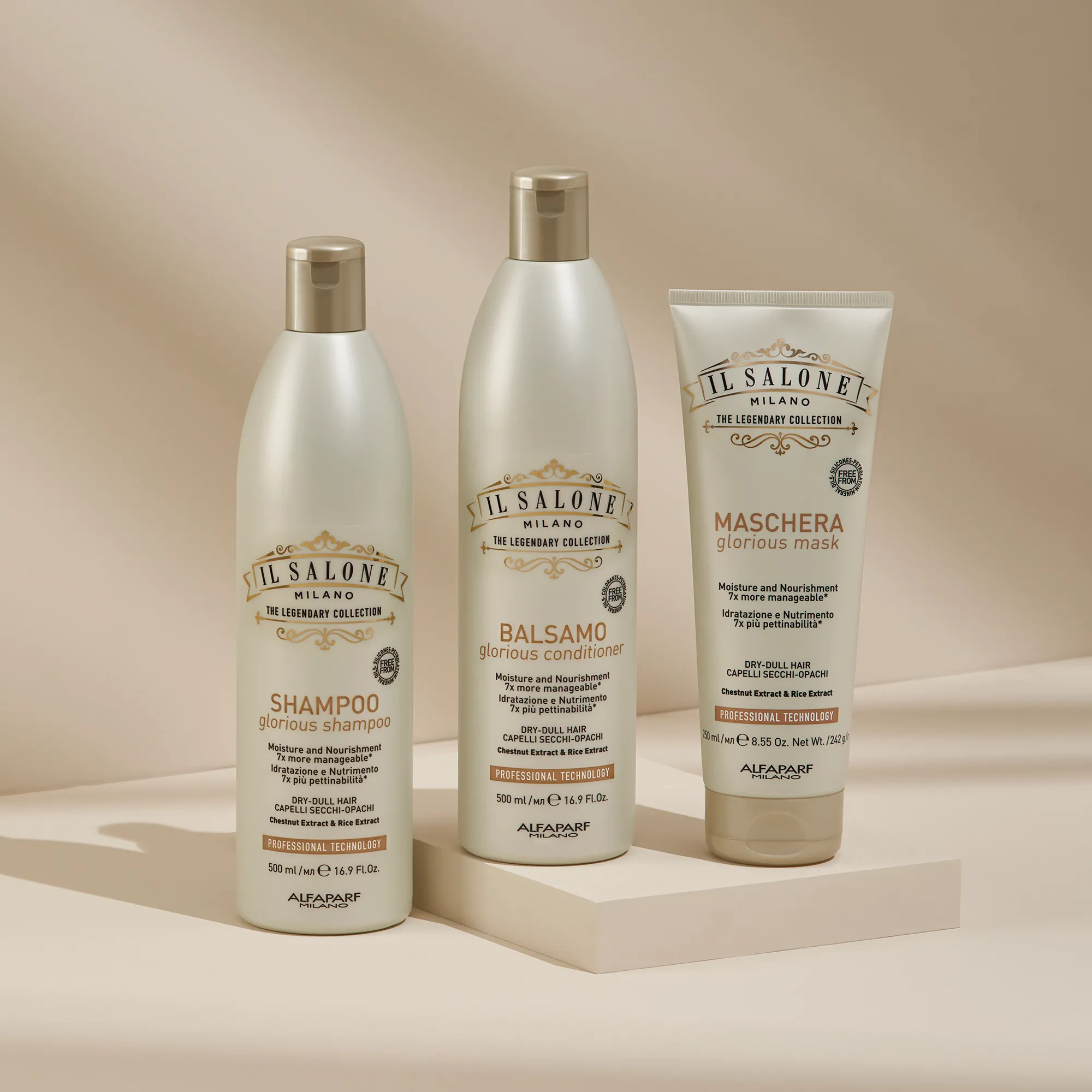 A Glorious professzionális termékcsalád mélyen táplálja és hidratálja a hajat. A haj fényes, selymes és 7-szer könnyebben fésülhető*.